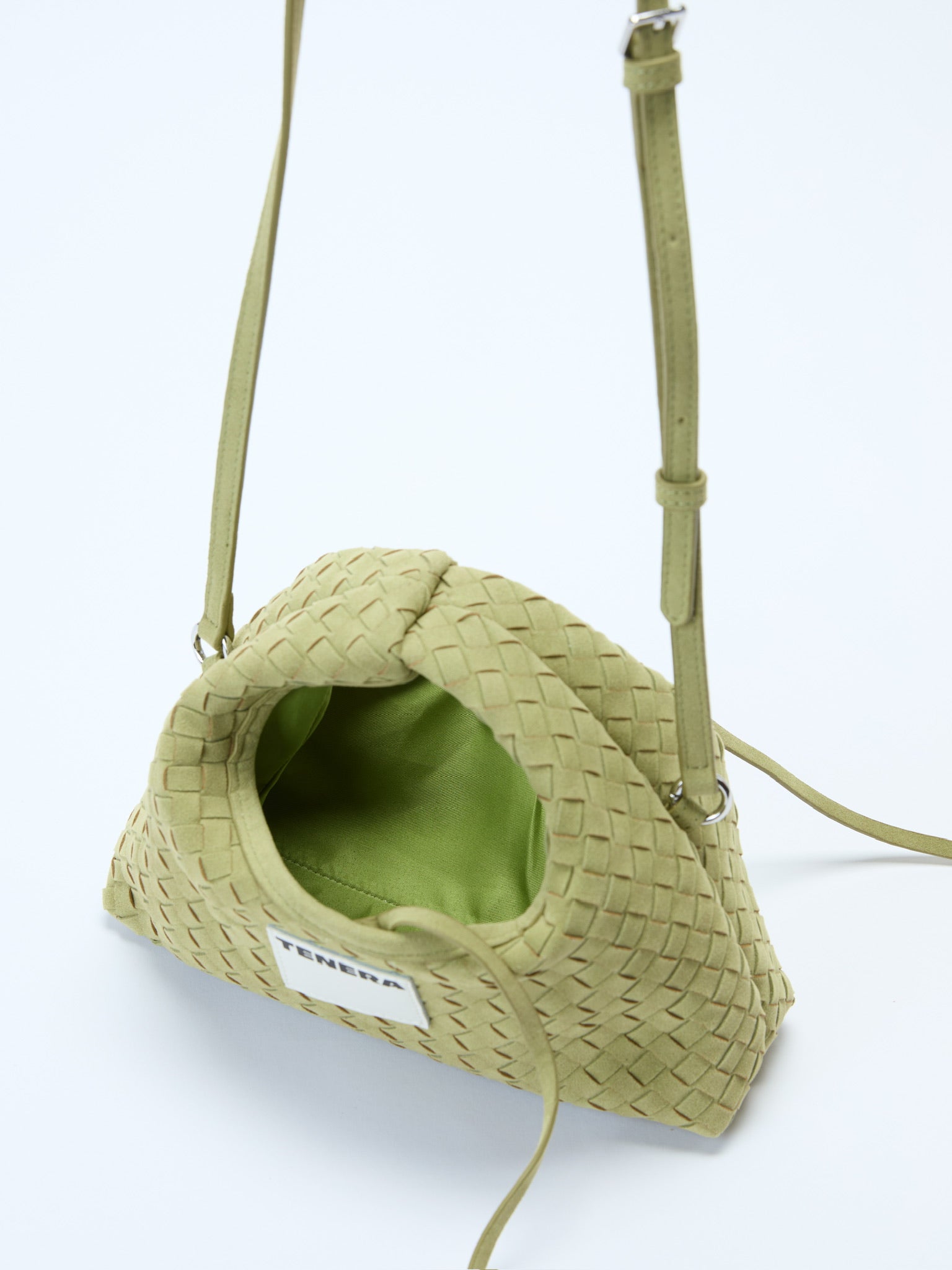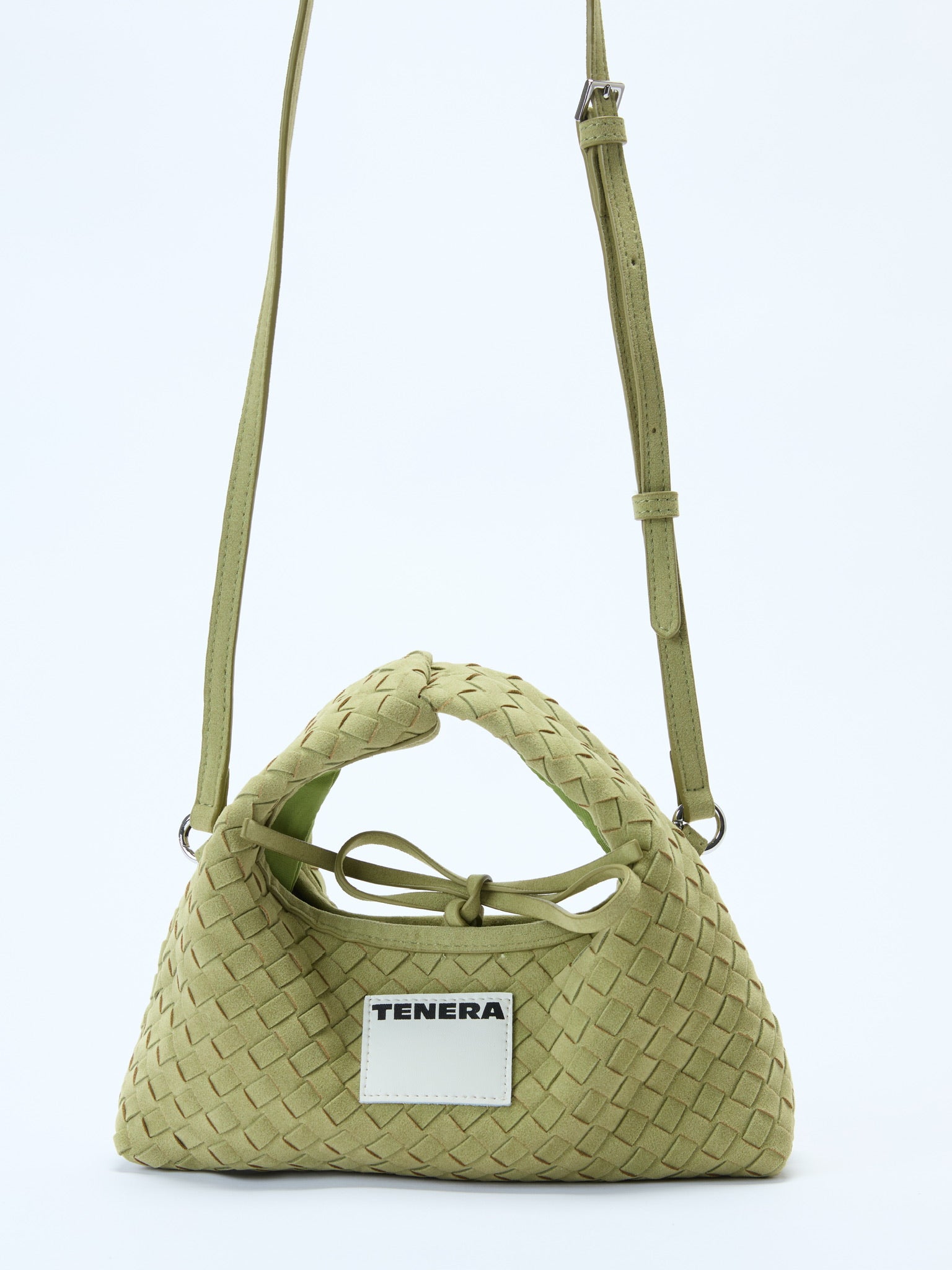 (Olive Green)Mini Hobo Crossbody Bag-TENERA Handwoven Suede Collection