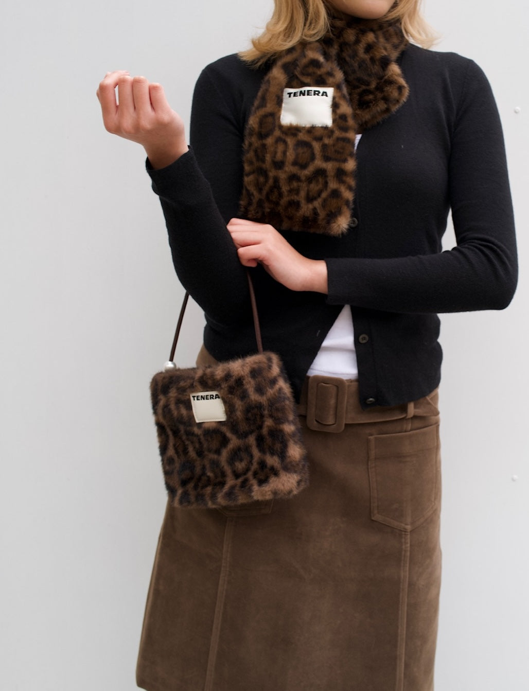 This stylish limited edition gift set features a charming leopard-print mini square bag paired with a matching leopard-print scarf, perfect for adding a touch of bold elegance to your look.