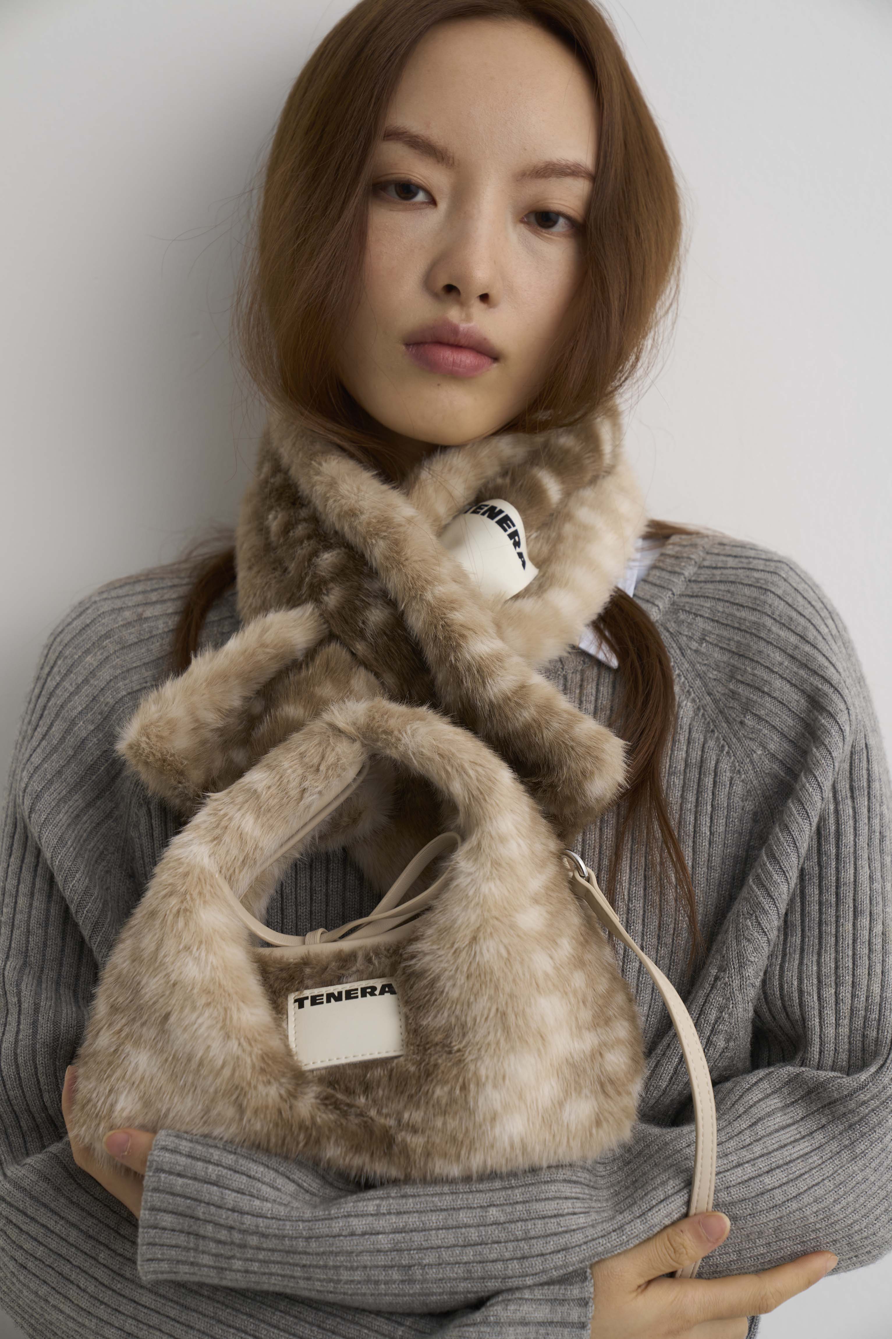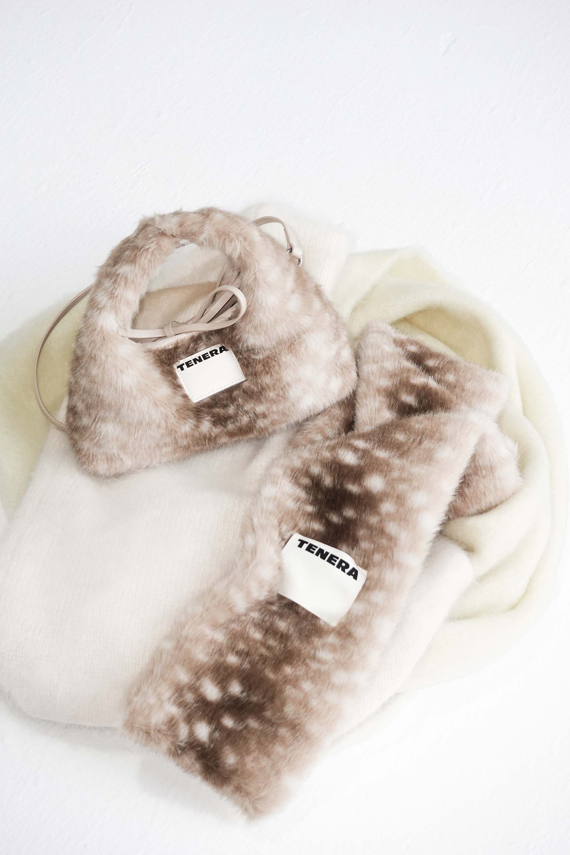 (Bambi Print)Eco Fur Mini Hobo & Scarf Set-TENERA Faux Fur Collection