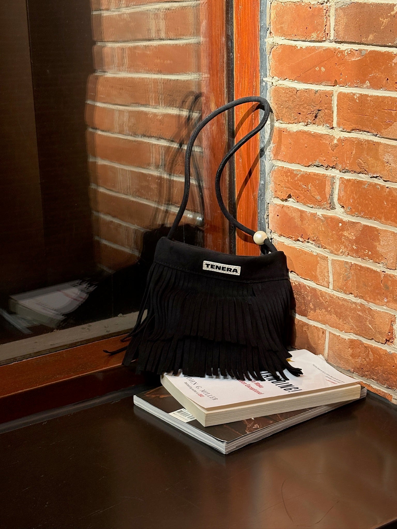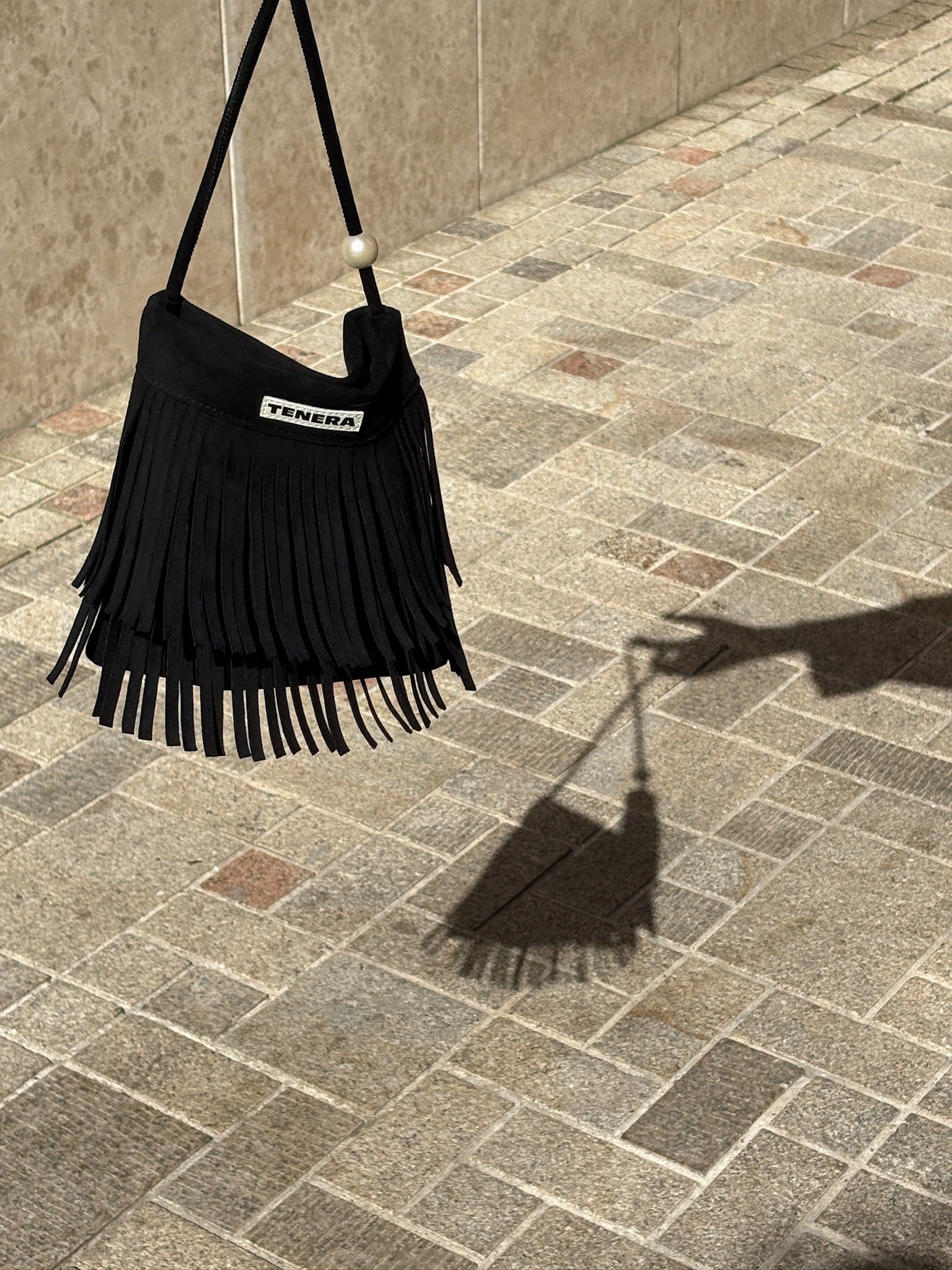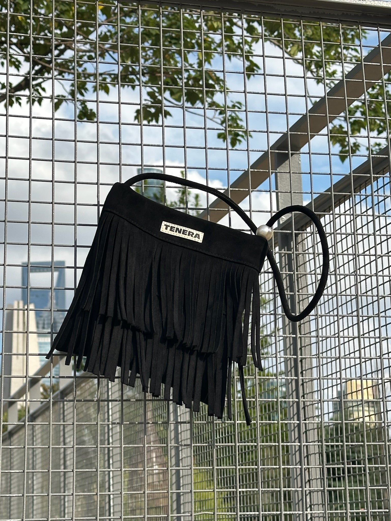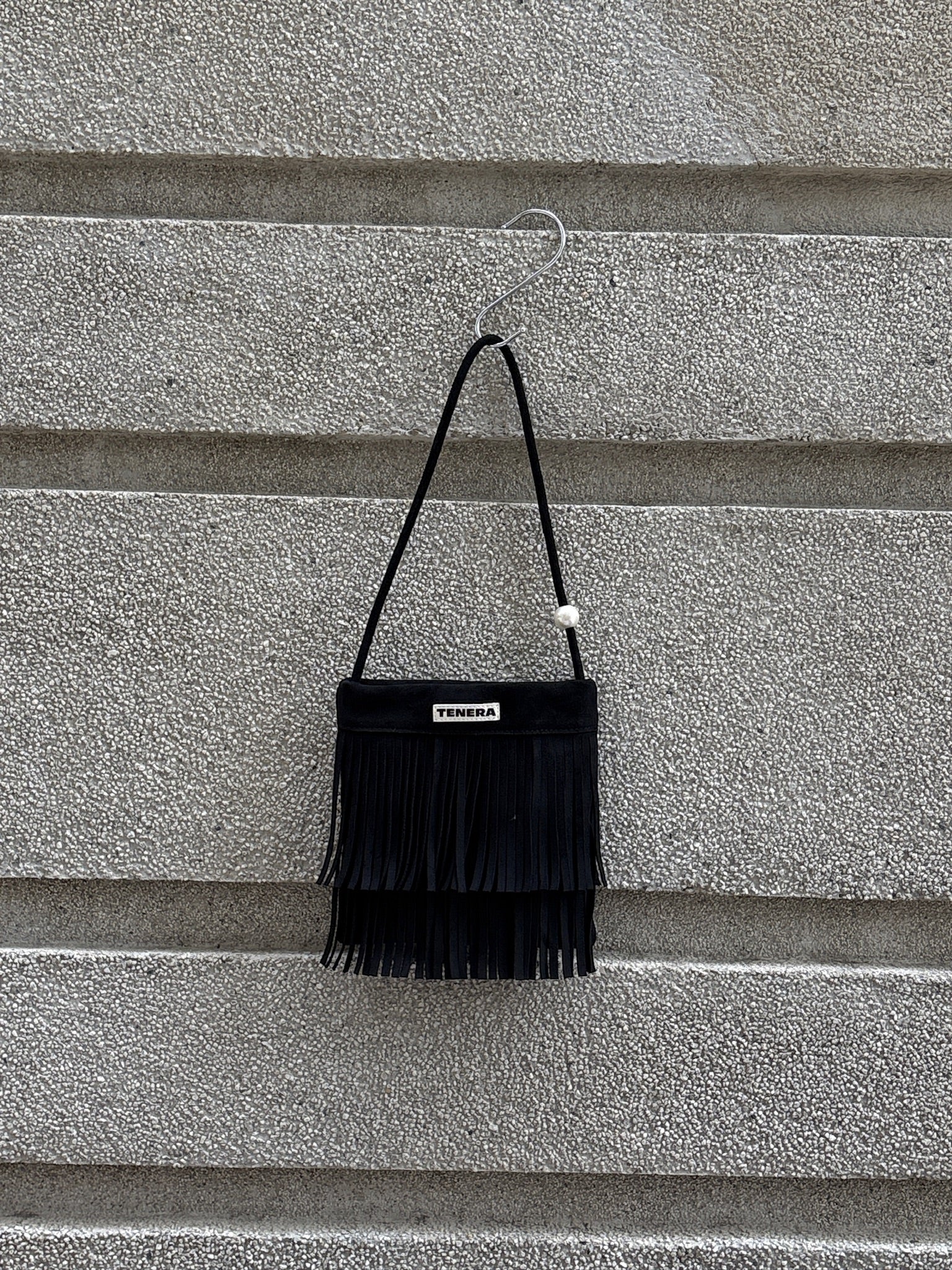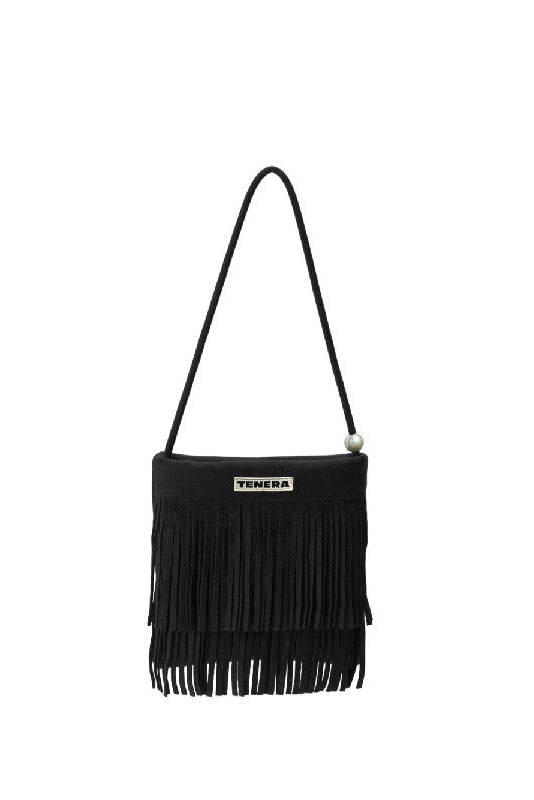 (Black)Mini Seude Pearl Bucket with Fringe-TENERA Boho Collection