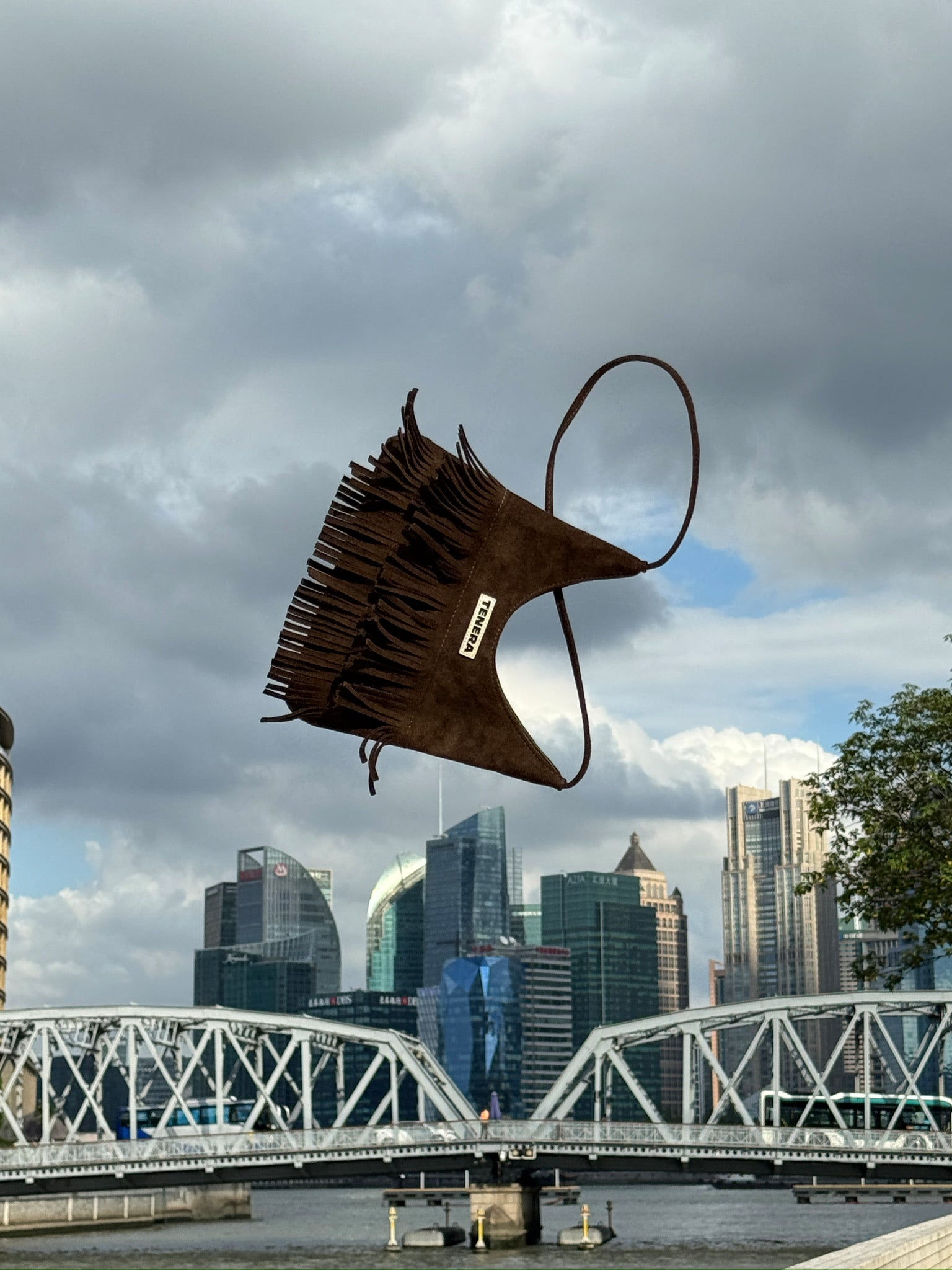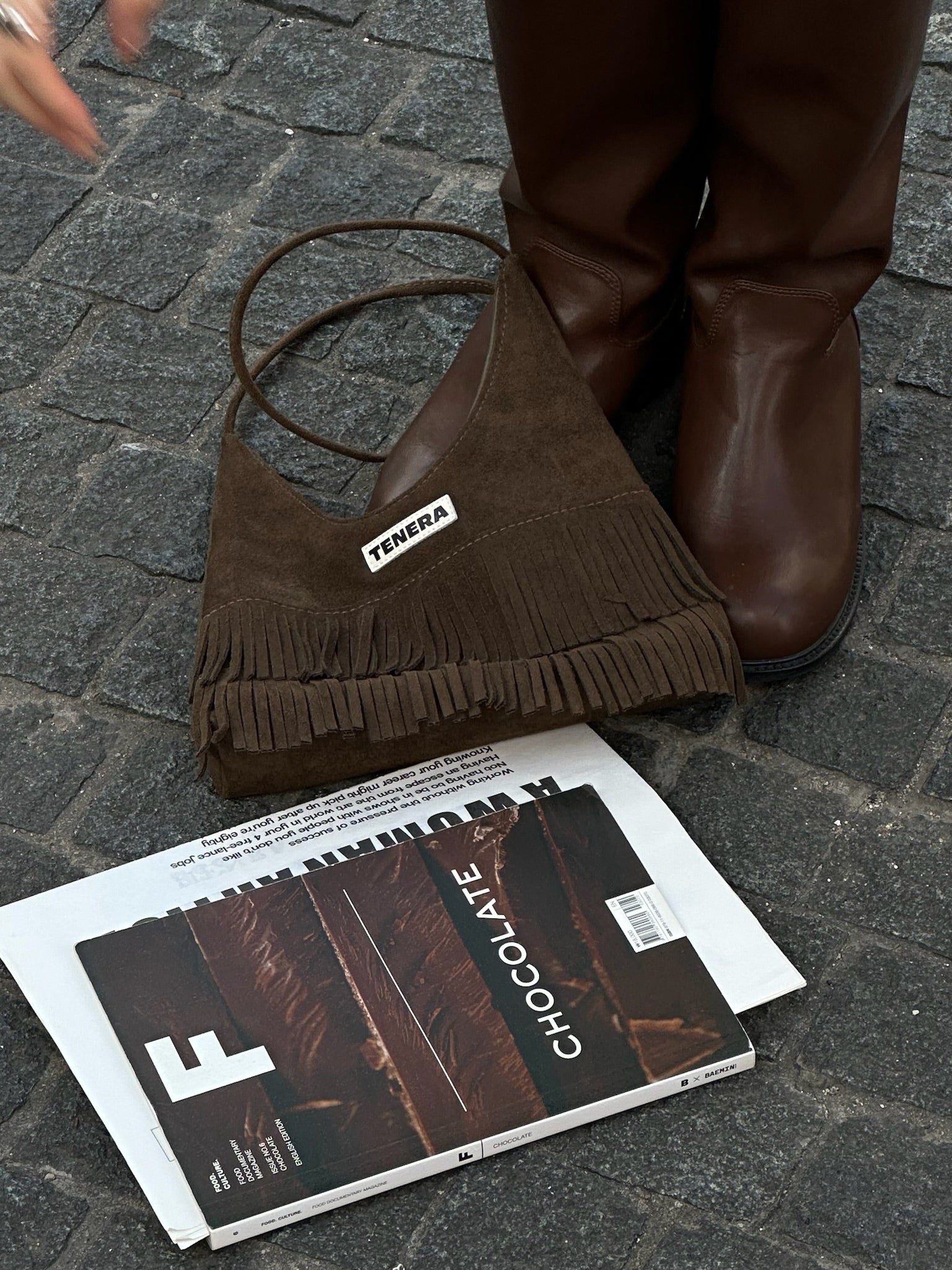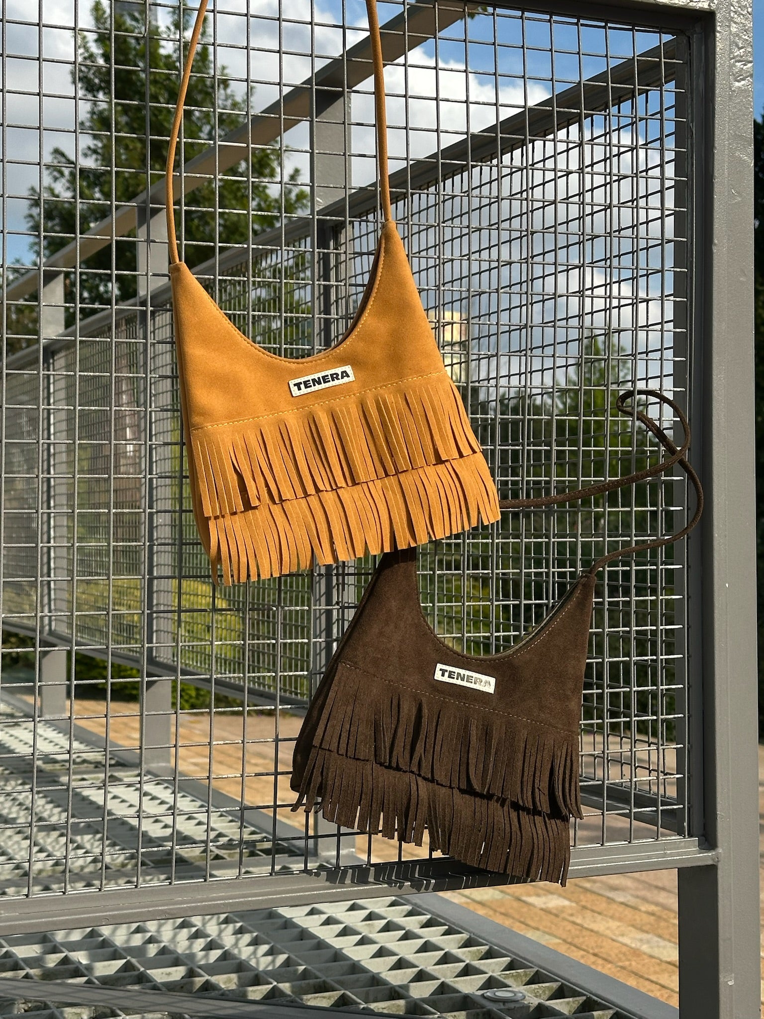 (Moss Green)Suede Fringe Baguette Bag-TENERA Boho Collection