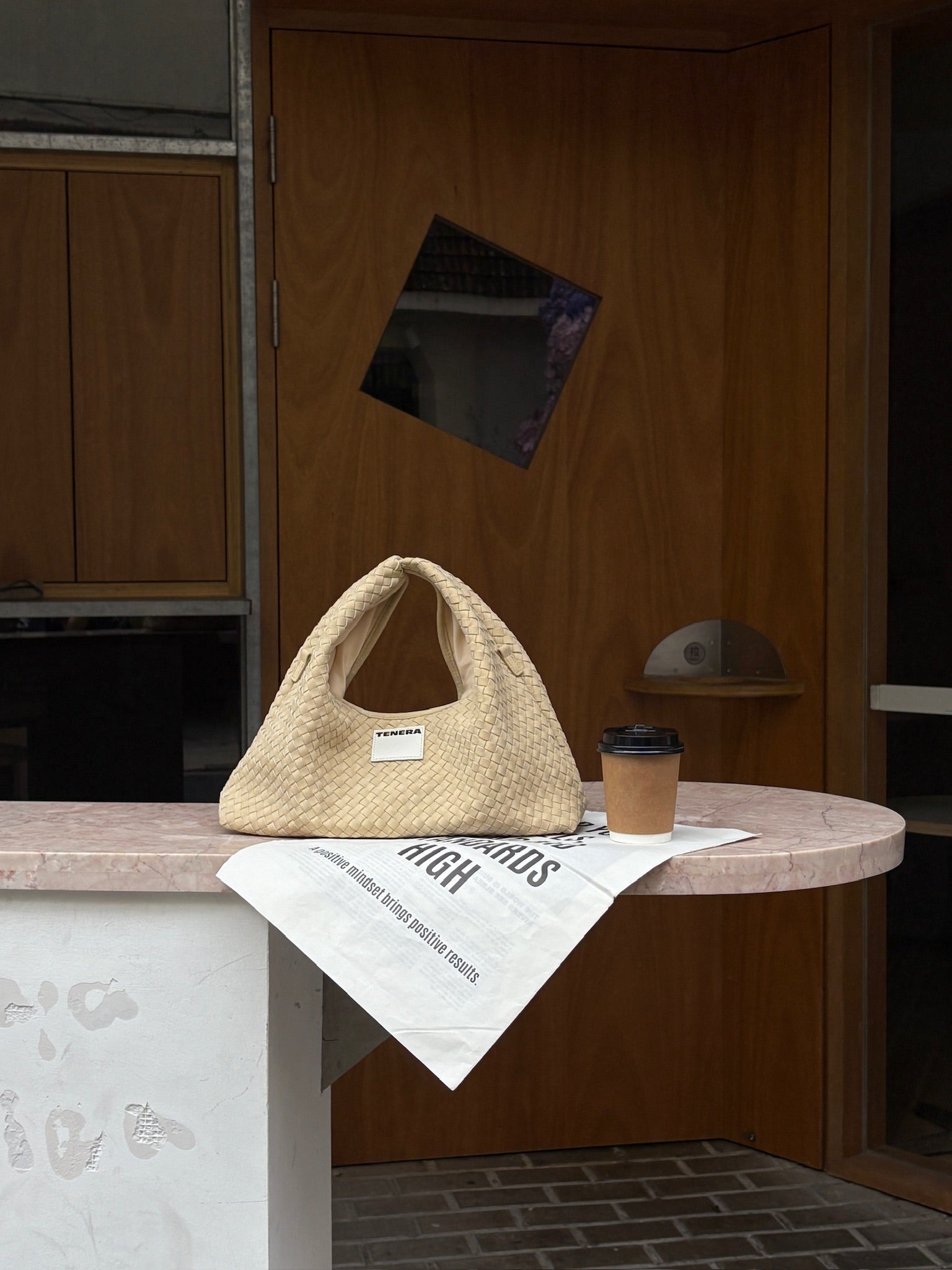(아몬드 베이지) 스몰 호보백 - 테네라 핸드워브 스웨이드 컬렉션