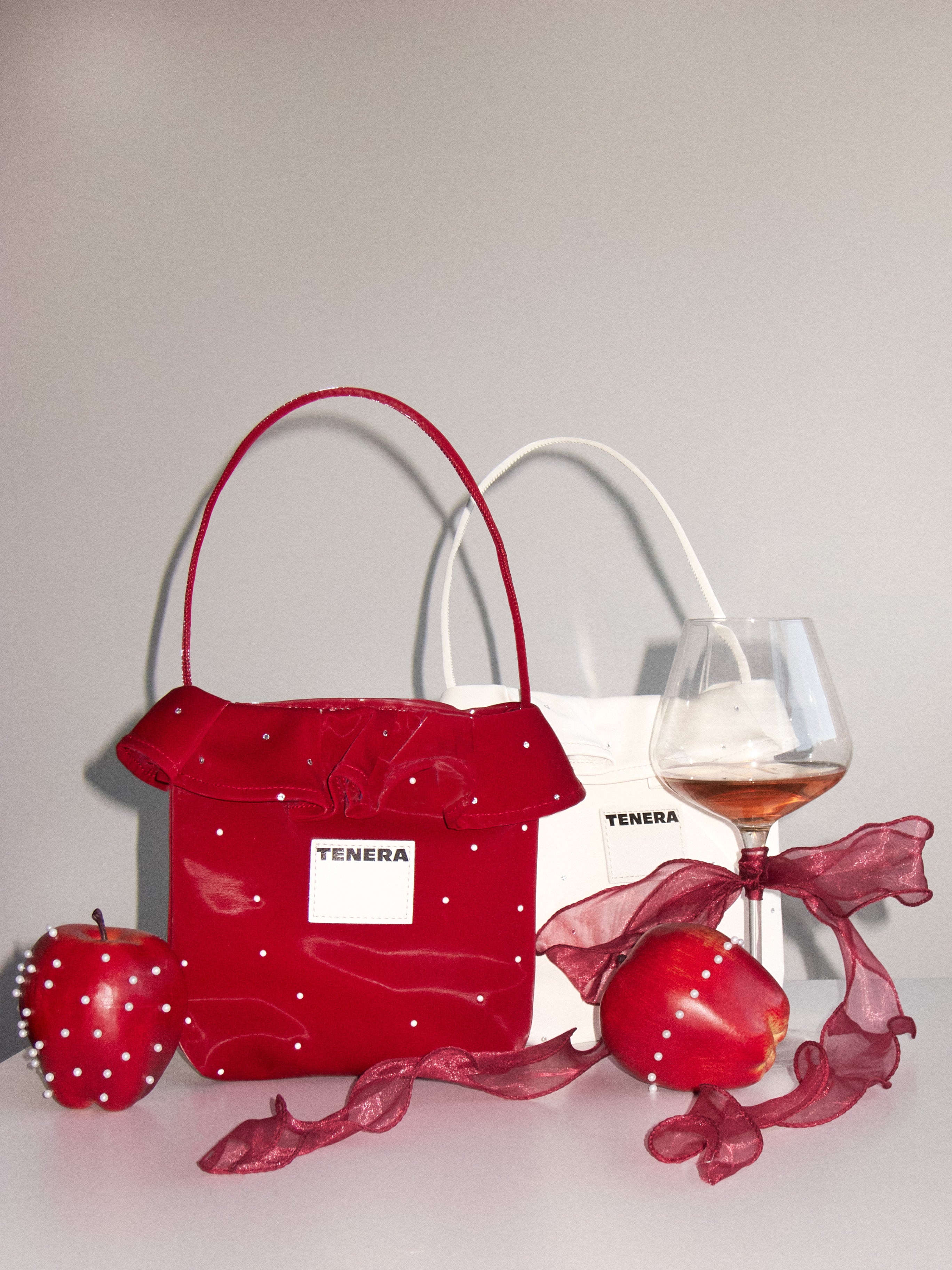 (Pearl Red)Velvet Flower Mini Bucket-TENERA Qixi Limited