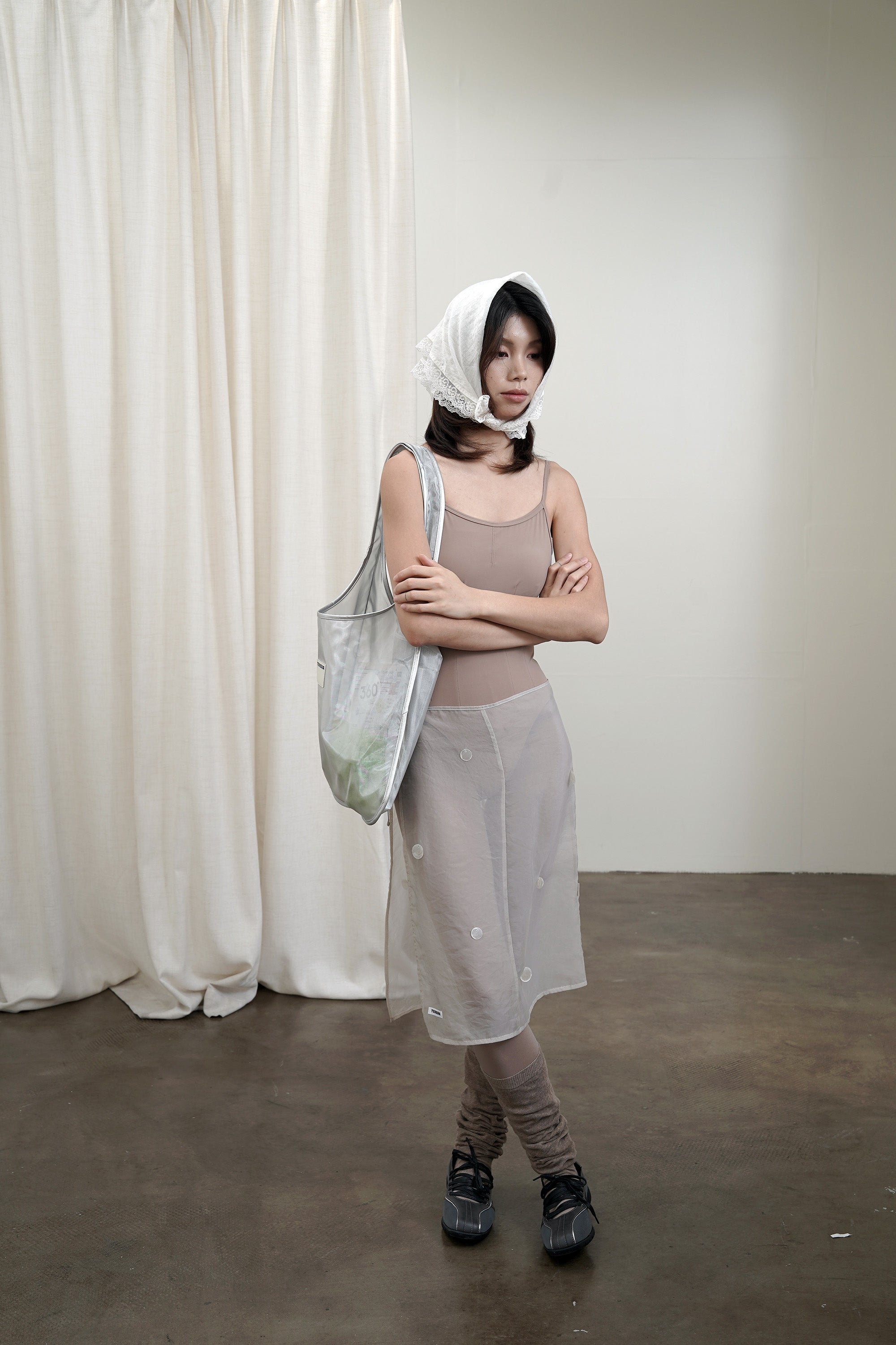 (Dream Silver)TENERA Leather-Mesh Shoulder Hobo