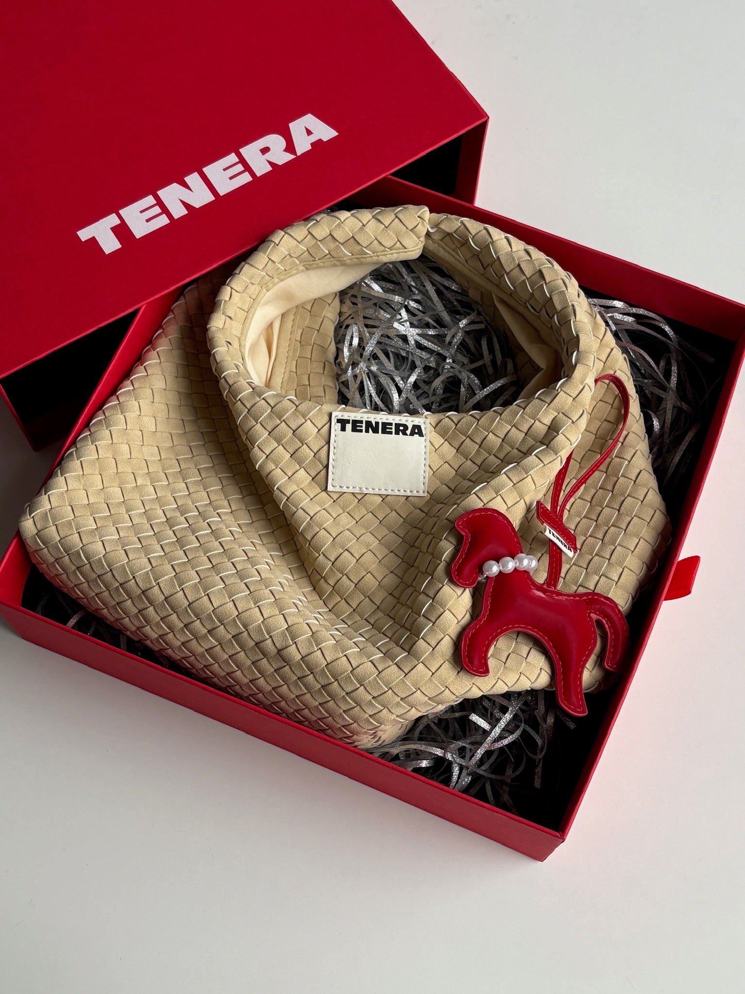 • Almond Beige Mini Suede Woven Bag + Pony Charm